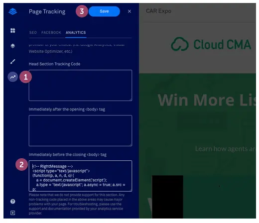 You can install your RightMessage tracking snippet through the Page Tracking settings in any one of your landing pages. When you’re finished, click Save and you’re ready to start personalizing your website.