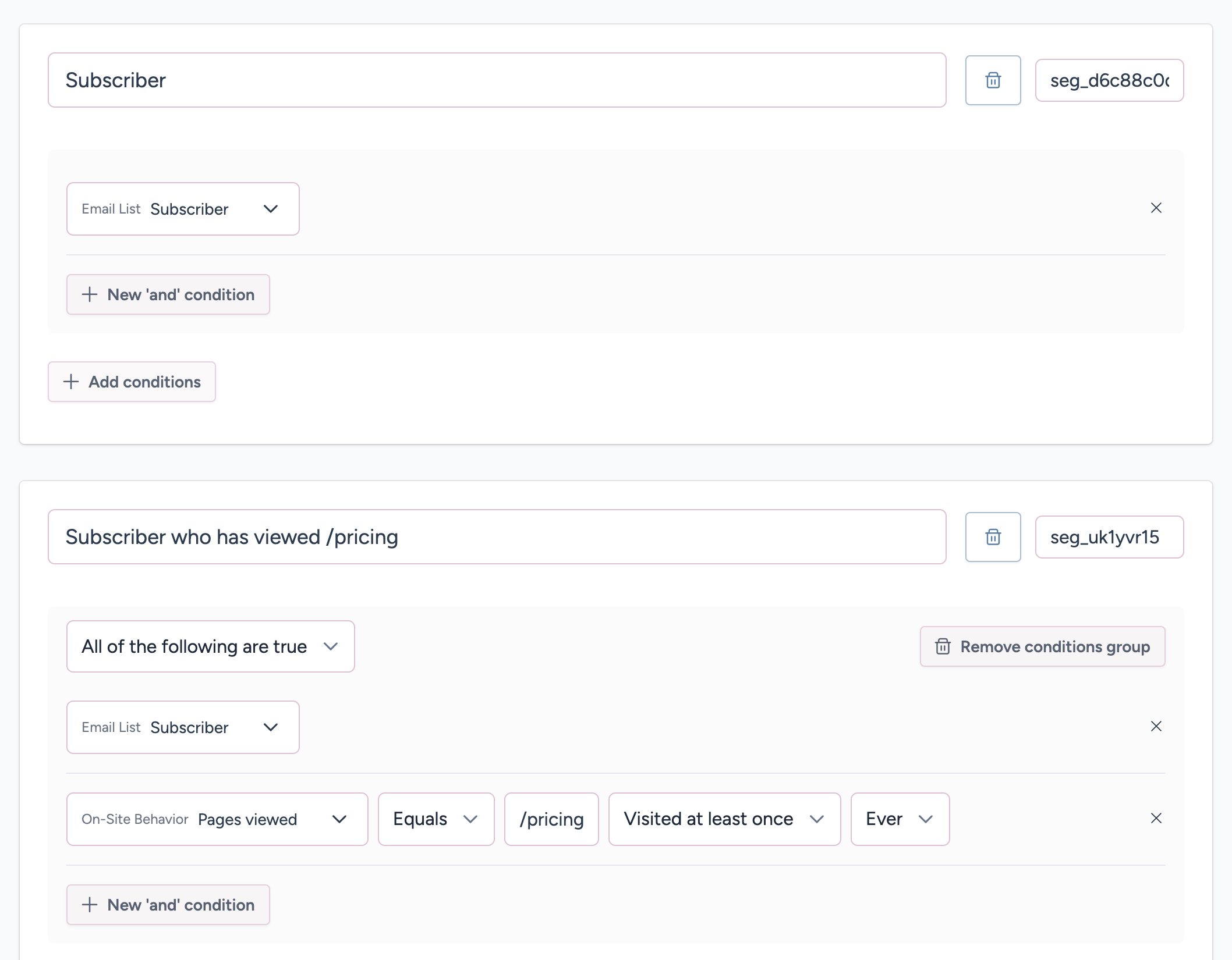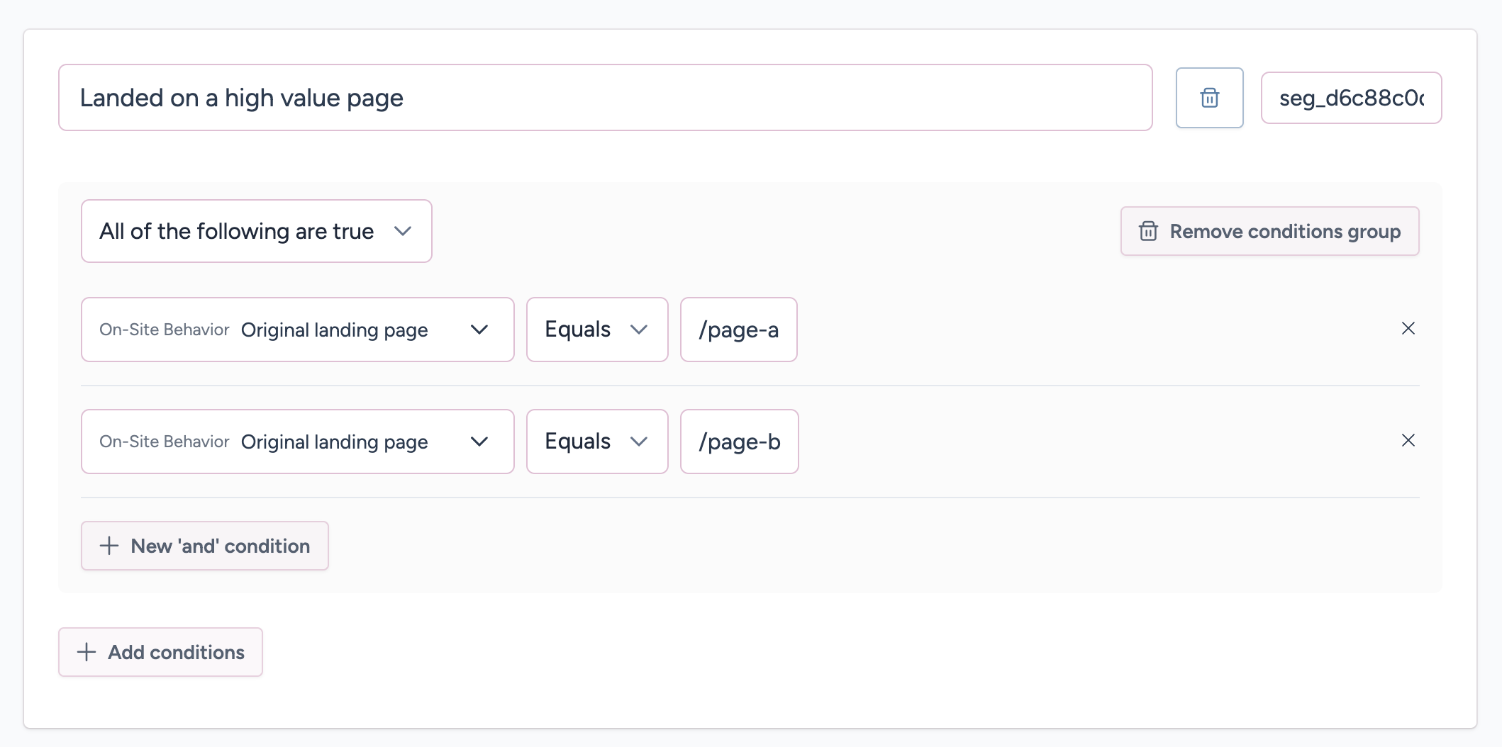 Each segment's conditions are made up of one or more condition groups.