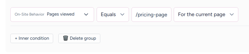 You can also segment visitors based on pages they’ve viewed, including the page they’re currently looking at.