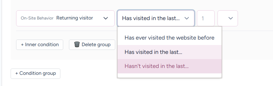 For example, if you only want to show a flashy CTA to someone if they haven’t been back in a while, that’s totally doable.