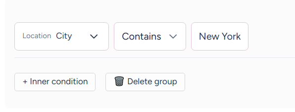 Enables filtering visitors based on their city location, also detected through IP address. This can be useful for targeting users in specific metropolitan areas or comparing engagement across different urban locations.