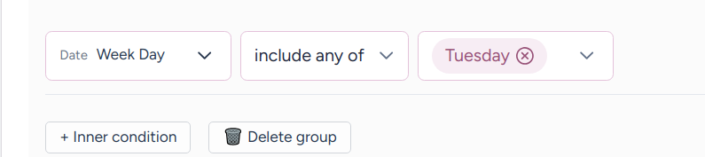 Allows you to set a specific date range for a people who visited your site in this period, using a start and end date (e.g., "Jan 1, 2025 - Jan 31, 2025"). It can be useful for tracking seasonality, or to ensure that an offer only runs during a promotional window.