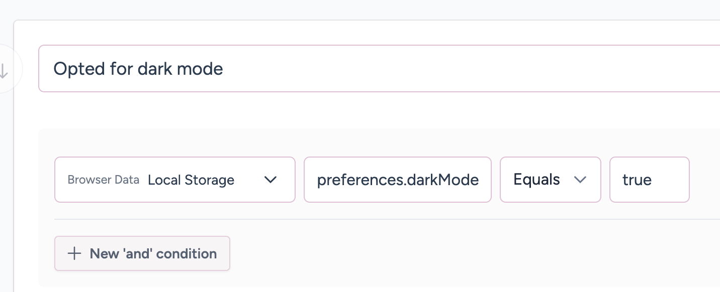 Segment based on data stored in the browser's localStorage.