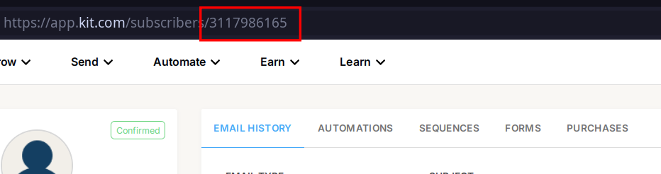 Once you know the custom query parameter we’re using for your chosen integration, all you need to do next is to find the unique ID for the contact you want to test. Hop on over to your ESP/CRM’s dashboard, find a subscriber, and copy their ID to your clipboard.