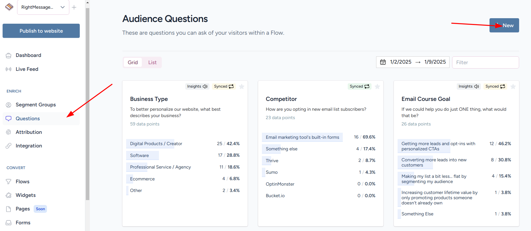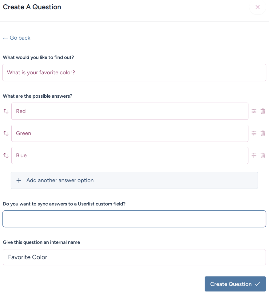 Add your question, the possible answers and whether you want to sync them with your ESP/CRM (don't forget, you have to integrate your ESP/CRM before you can sync!), then hit Create Question and you have your segments!