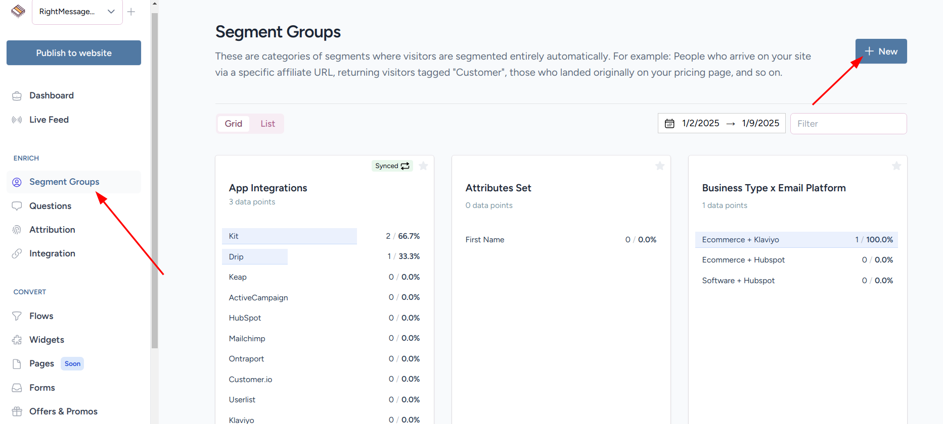 Segment Groups: Automatically categorize visitors based on their behavior, data, or attributes (like "Website Activity" or "Geographic Location")