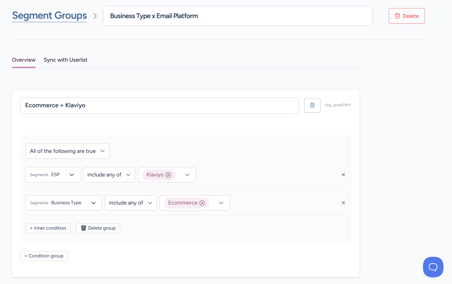 For example, you can create a segment group that identifies visitors who use both Klaviyo AND are in the Ecommerce business type.