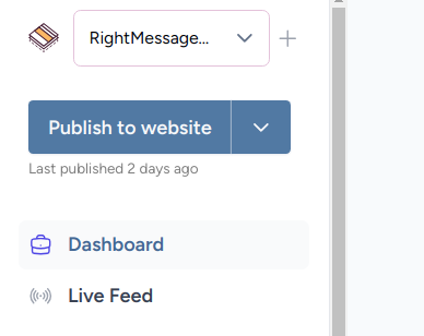 When you make changes within the RightMessage app, those changes don’t go live immediately. Instead, when you’re ready for the work you’ve been doing to be “pushed” to your website, simply click the “Publish to website” button at the top left of every page.