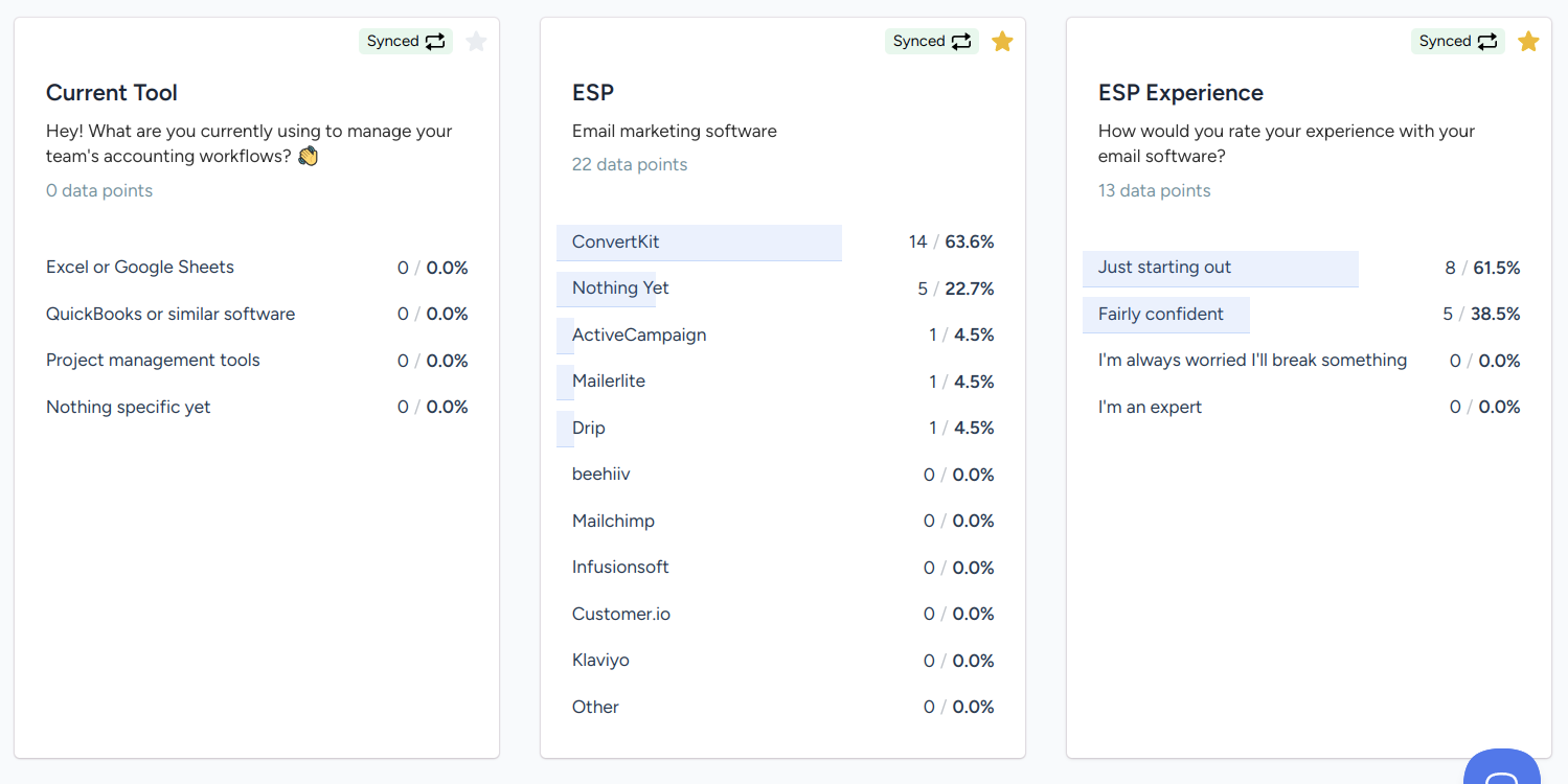 In the Questions menu, you’ll see a list of cards. Each card represents a Segment Group (don't forget a Question IS a Segment Group), and within each card is a meter showing the percent split of the segments within each group.